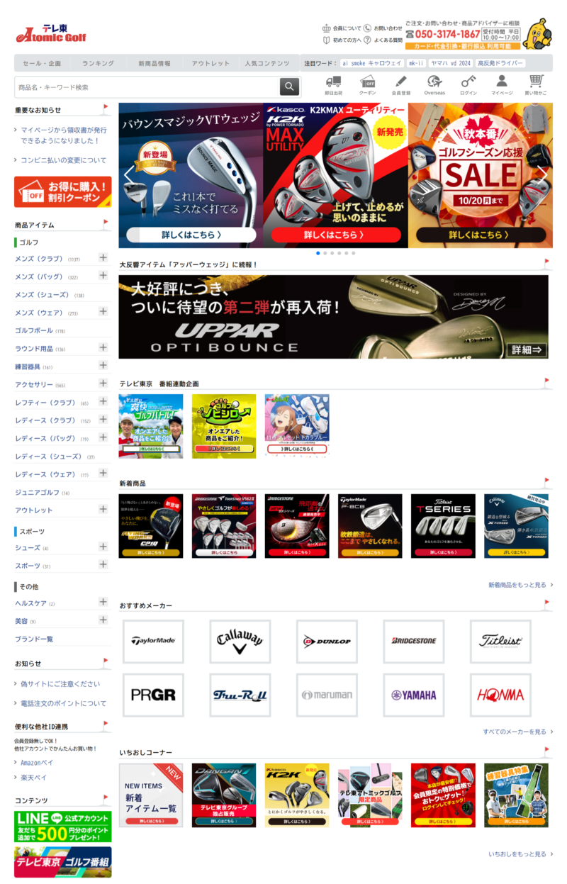 ゴルフ用品をお得に購入するなら「アトミックゴルフ」! 当店は、初心者から中級・上級者まで幅広いゴルファーに対応した、 豊富なゴルフクラブ・ウェア・シューズ・練習器具などを取り扱うゴルフ専門通販サイトです。 ドライバー、アイアン、パター、ウェッジなど主要ブランドのゴルフクラブをはじめ、 スリクソン、キャロウェイ、テーラーメイド、タイトリストといった人気メーカーの商品を 激安価格で多数ご用意。中古クラブや型落ちモデルのアウトレットセールも定期的に開催しており、 「コスパ重視で賢く揃えたい」というゴルファーに特におすすめです。 また、アトミックゴルフでは即日発送率60%超を実現しており、 「すぐに練習したい」「週末のラウンドに間に合わせたい」という急ぎのニーズにも対応。 全国送料無料(一部条件あり)、安心の返品保証、丁寧なカスタマーサポートも充実しているため、 はじめてのゴルフ通販でも安心してご利用いただけます。 最近ではテレビ東京ダイレクトとの連携により、「テレ東アトミックゴルフ」としてテレビ通販も展開中。 ネット通販とテレビ通販のハイブリッドで、より多くのユーザーに支持されています。 |